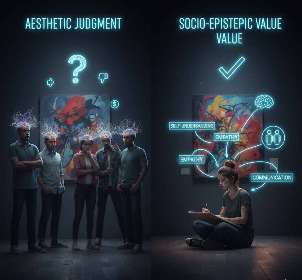 Instead of focusing on aesthetics (Is it beautiful?), focus on the work’s transformative power—its socio-epistemic value (What does it do?).